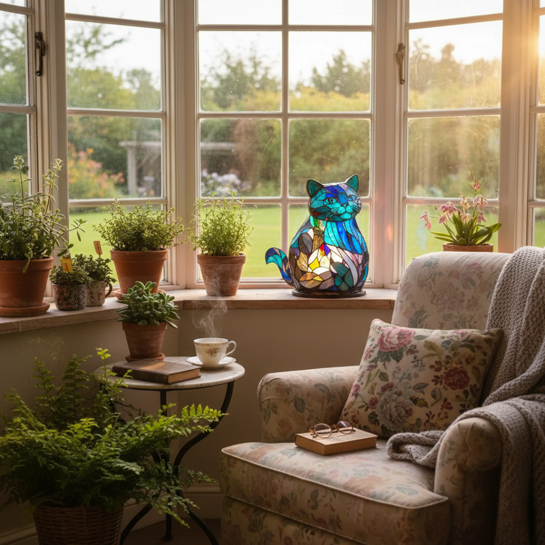 I ordered the stained-glass cat lamp and it’s even more beautiful in person. The colours glow so warmly in the evening — it completely transforms the room. You can really tell it’s handmade with care.